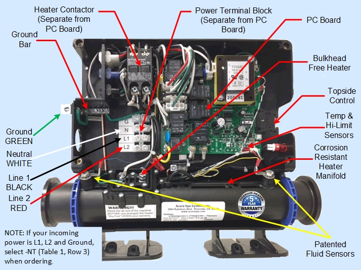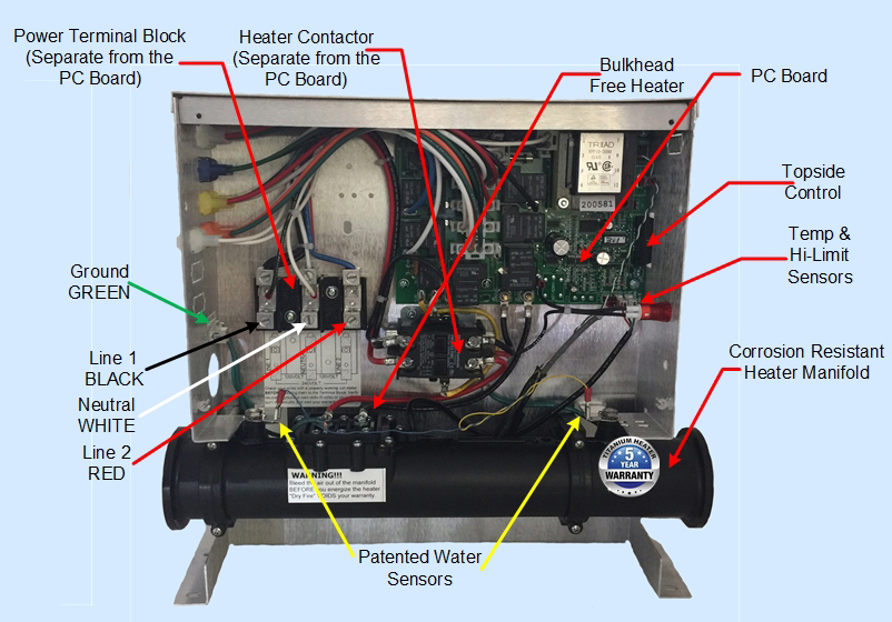Operates up to 5,500 Watt Heater and up to 1 Jet Pump, 1 Circ. Pump and 1 Blower PM Series - Low Operating Costs Replaces All Controls With 15" Heater Manifolds
