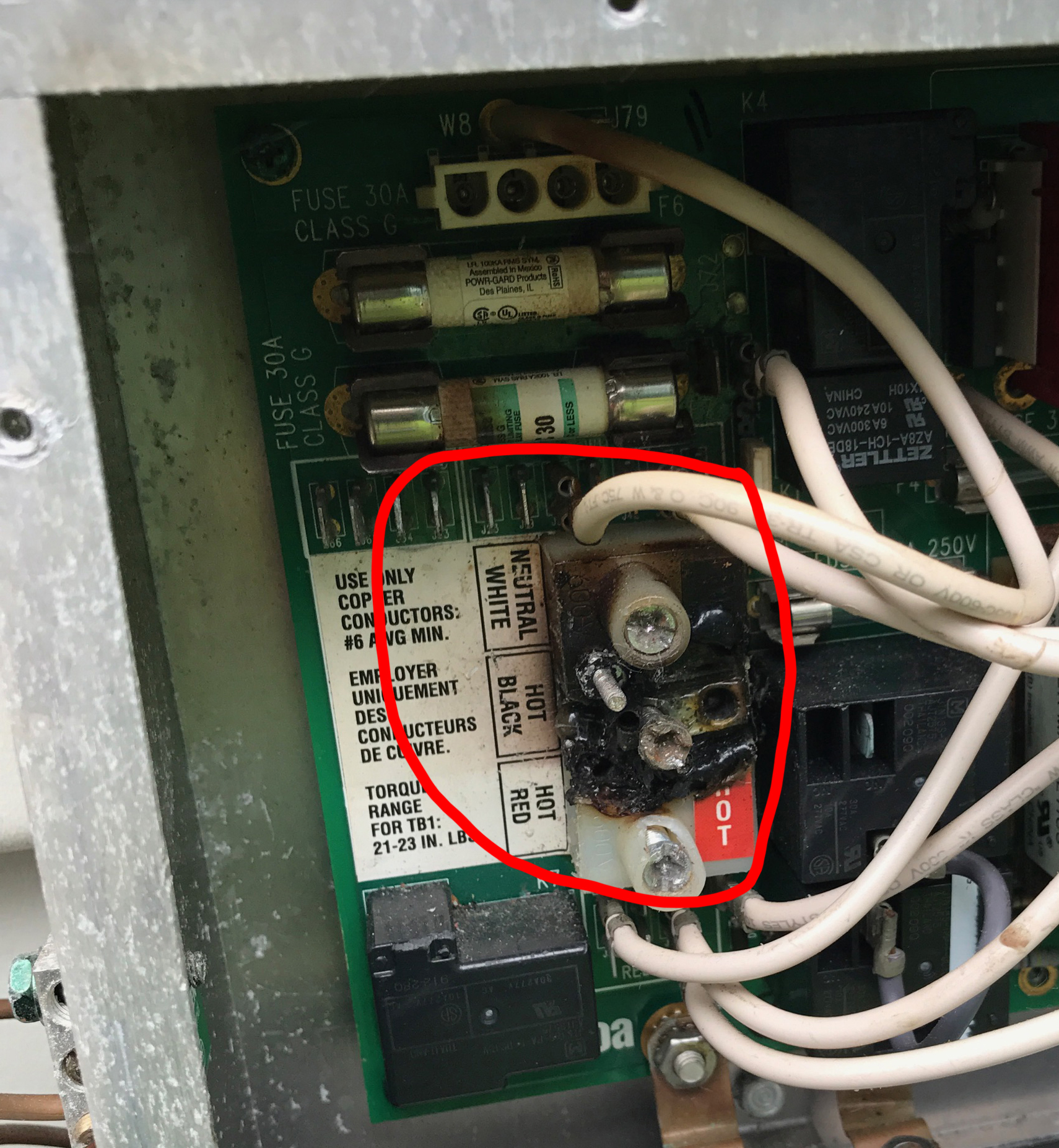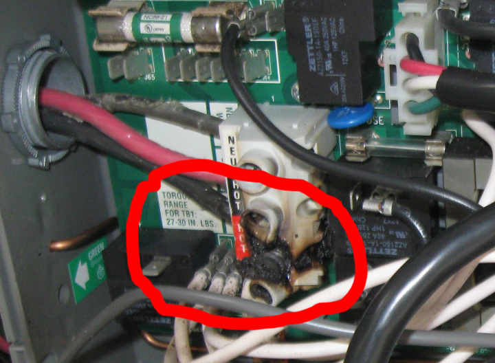 Problem (1): Power Terminal Block Soldered Directly on PC Board Typical failures occur when the incoming power is connected directly on the PC board. The PC board must be replaced at hundreds of dollars.