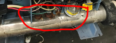 Problem (3): Heater with Bulk-Heads and 304 Stainless Steel Manfiold Typical failures occur on this style of heater with bulk-heads where the bulk-heads are braised or welded or crimped and epoxied and the heater manifold is made out of 304 stainless steel.