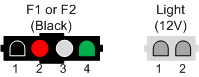 Please match accessory plugs to matching receptacles.Fig. (f) - Megatrol Accessory Receptacles.