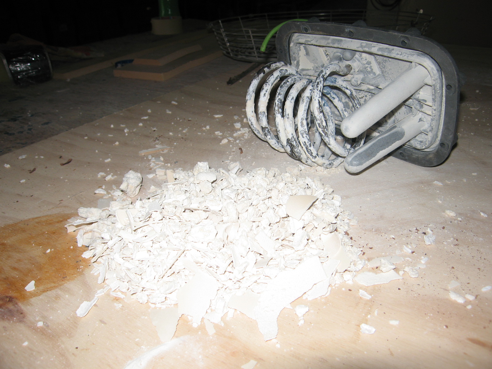 The heater manifold was plugged and the heater was completely encased in calcium deposits.